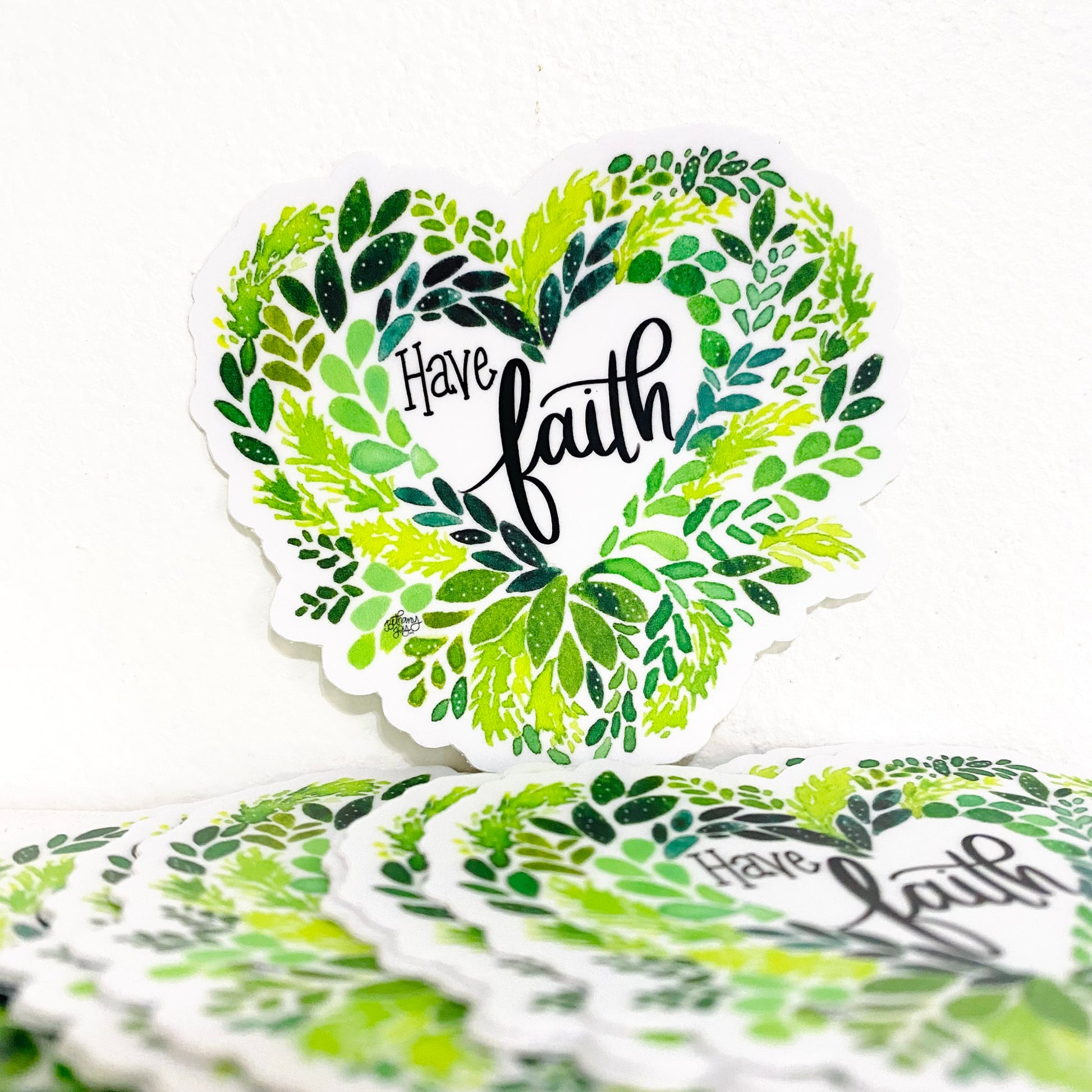 This listing is for a “Have Faith” Greenery Heart clear vinyl sticker!