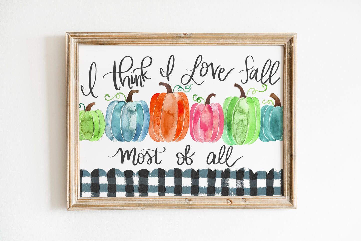 "I Love Fall Most of All" is an art print on high-quality, fine art, matte paper that is printed in-house with our professional inkjet printer. Your print will be borderless and have a genuine signature added before each sale.