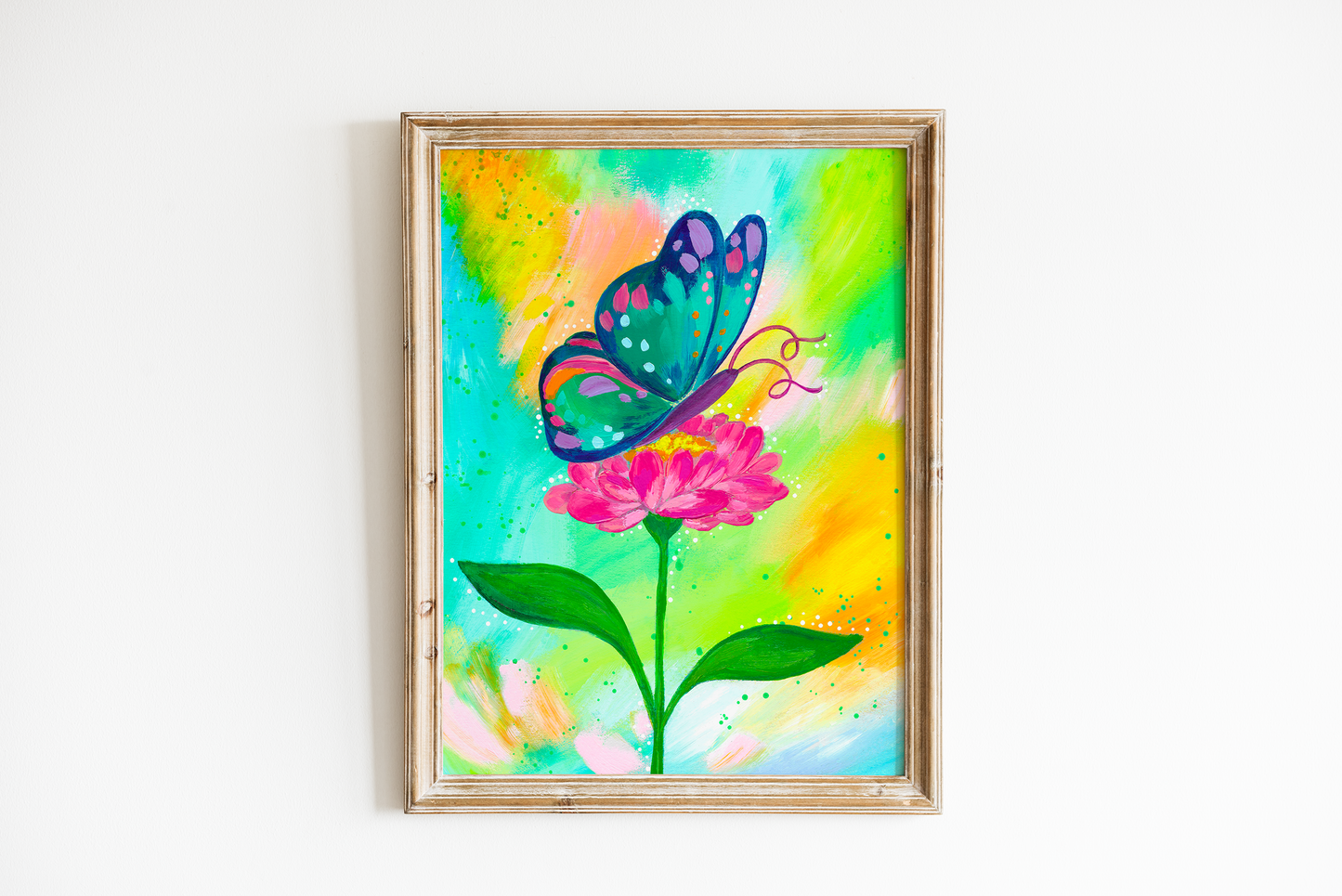 "Floral Butterfly" is an art print on high-quality, fine art, matte paper that is printed in-house with our professional inkjet printer. Your print will be borderless and have a genuine signature added before each sale.