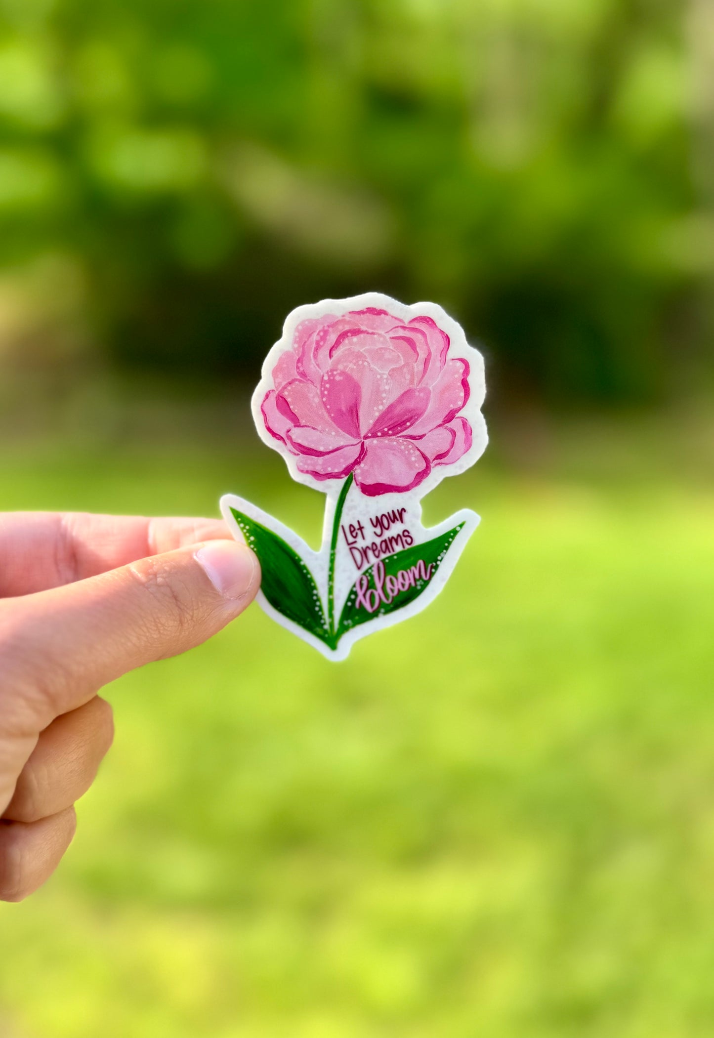 This listing is for a “Let Your Dreams Bloom” Peony sticker! This design is one of the flowers that you can learn how to paint in the book that I wrote: happyflowerpainting.com