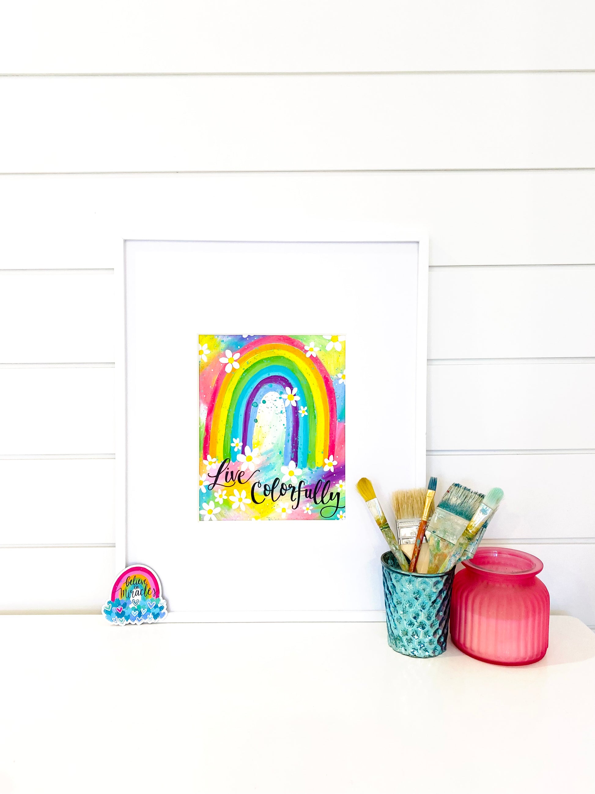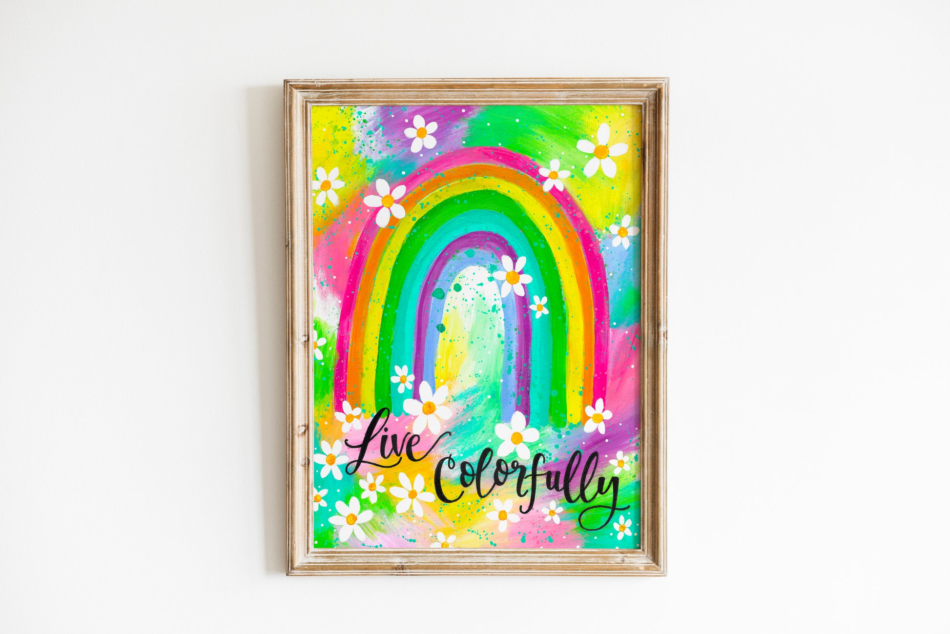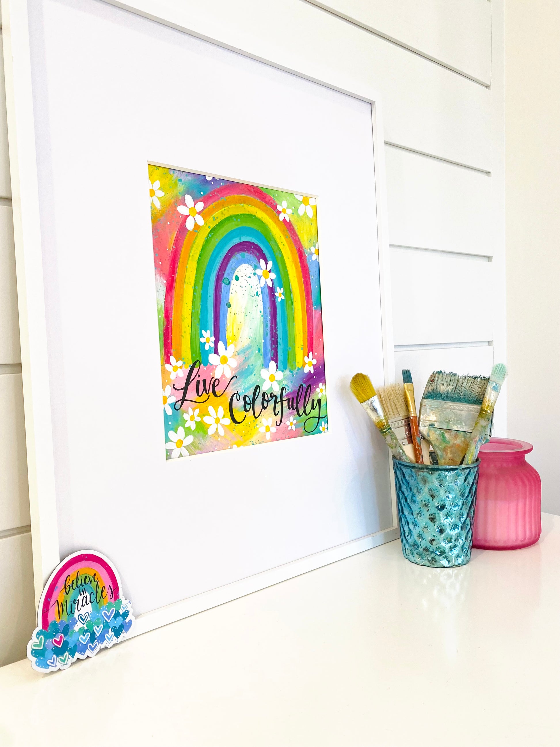 "Live Colorfully Rainbow" is an art print on high-quality, fine art, matte paper that is printed in-house with our professional inkjet printer. Your print will be borderless and have a genuine signature added before each sale.