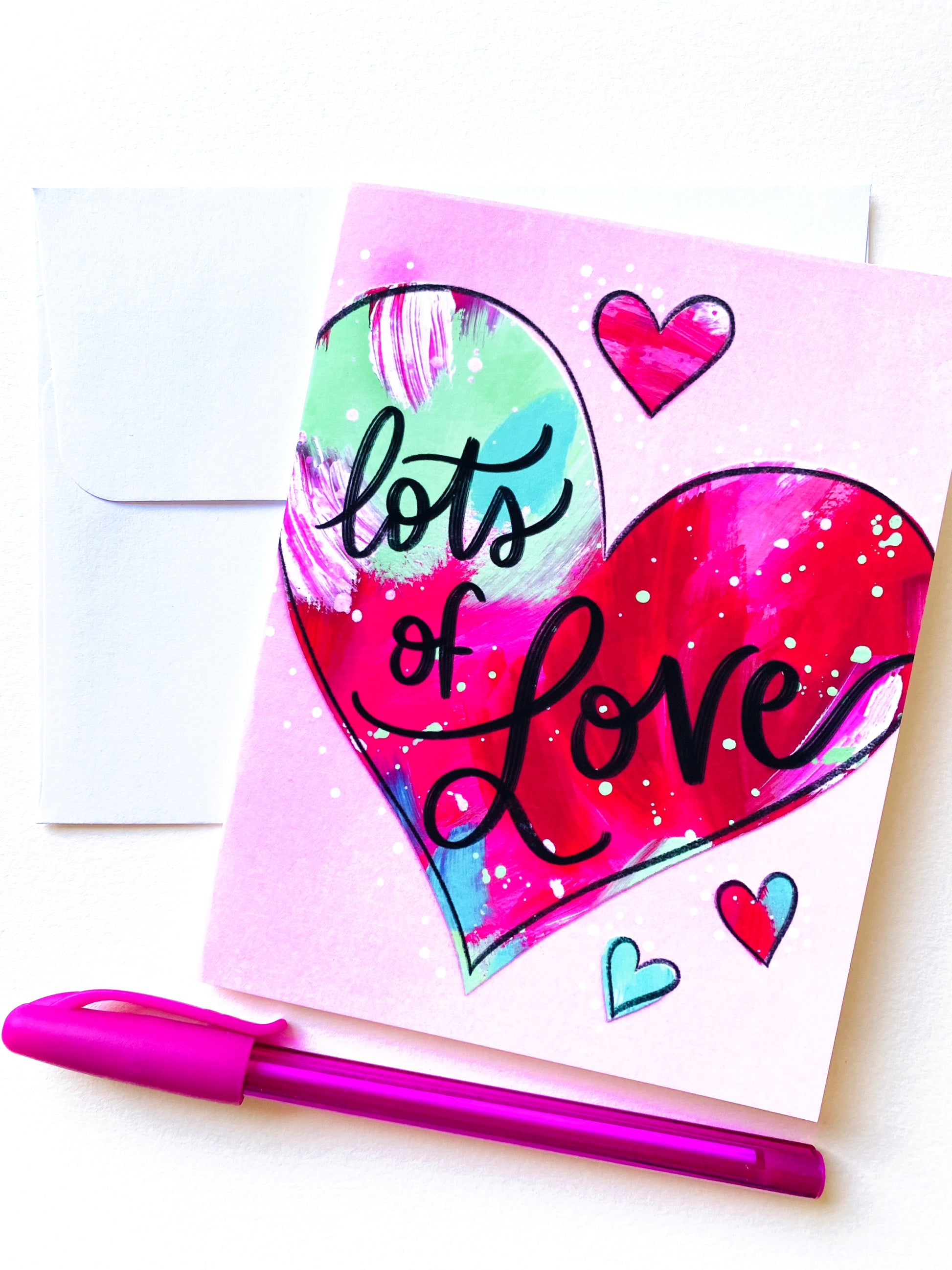 This listing is for one 4.25 x 5.5 inch folded Valentine greeting card with a white envelope.