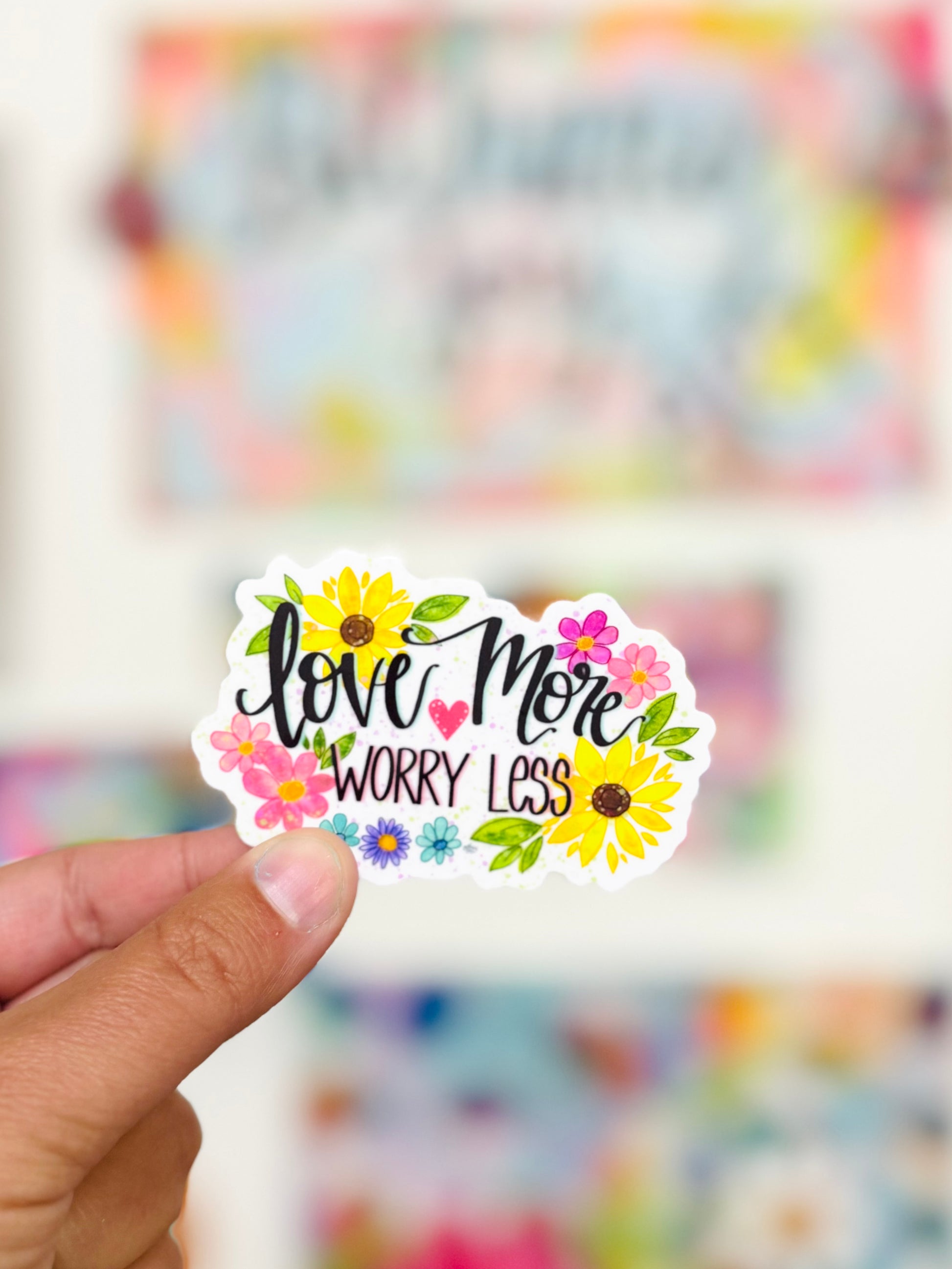 This listing is for a “Love More, Worry Less” vinyl sticker.