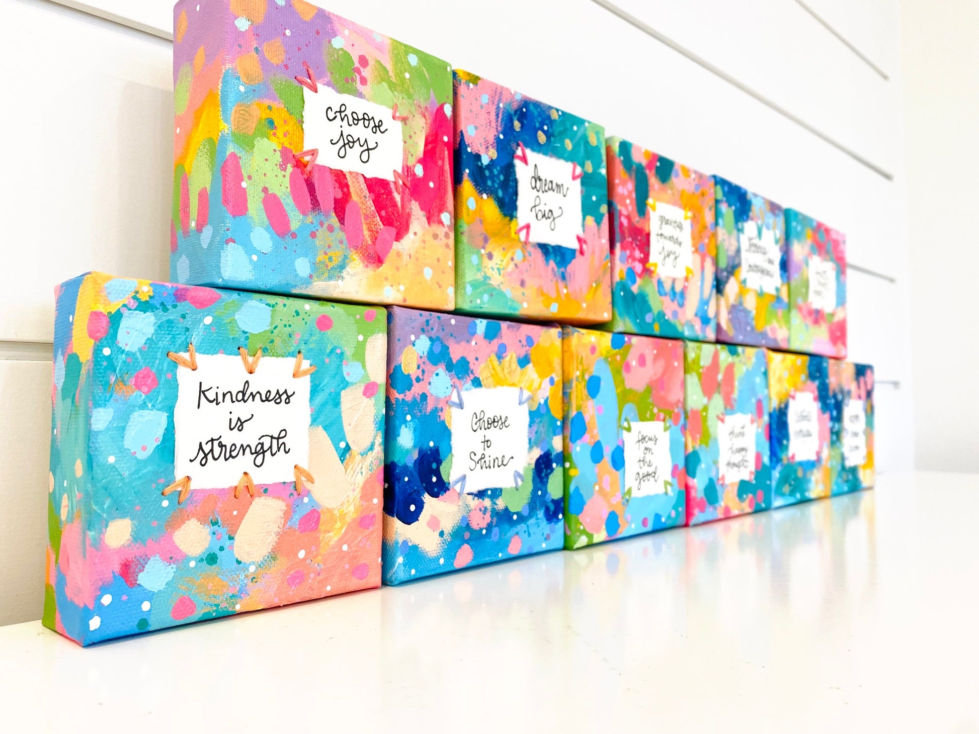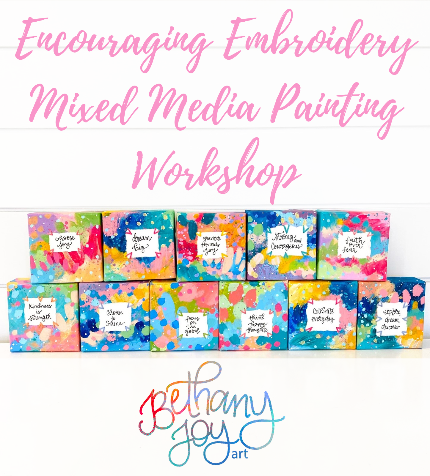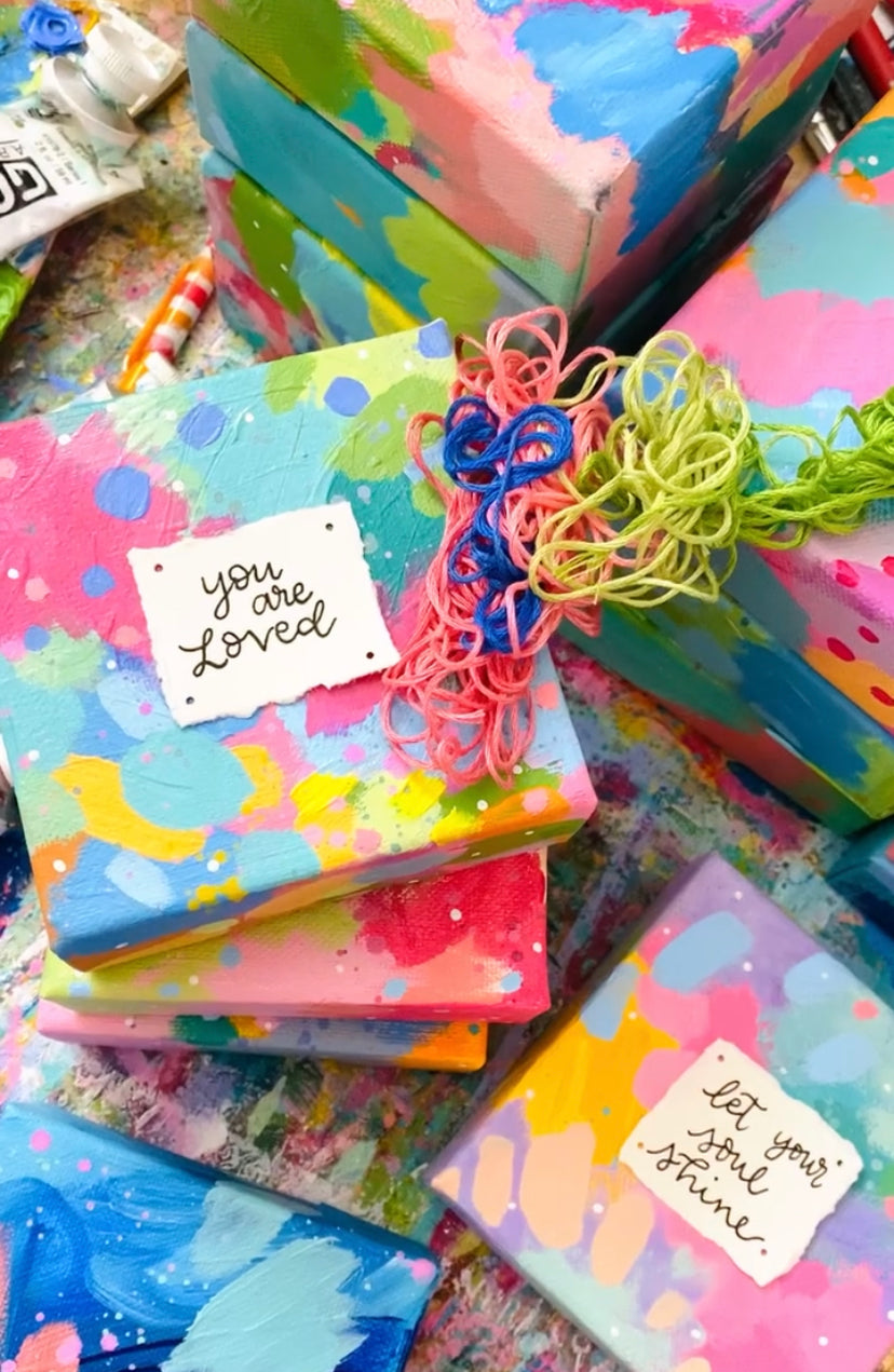 Of course, you’ll be able to put your own spin on things as well...once you’ve learned my step-by-step process, you’ll find that it will be easy to switch things up and use your own colors, canvas sizes, different layering techniques, and adding your own favorite quotes and sentiments to each painting!