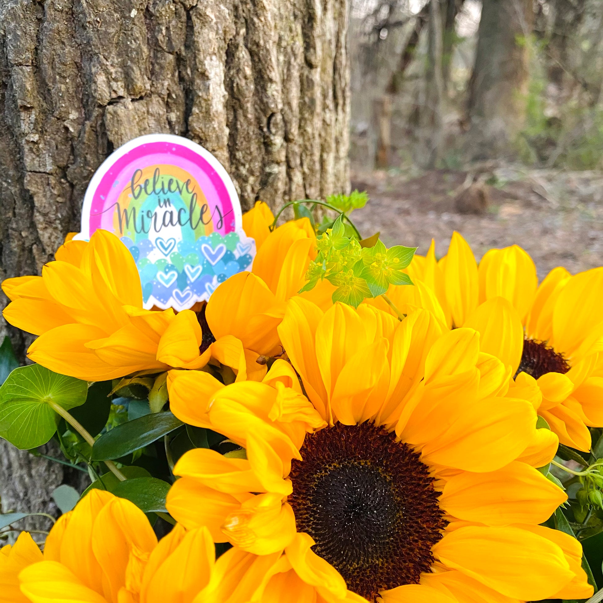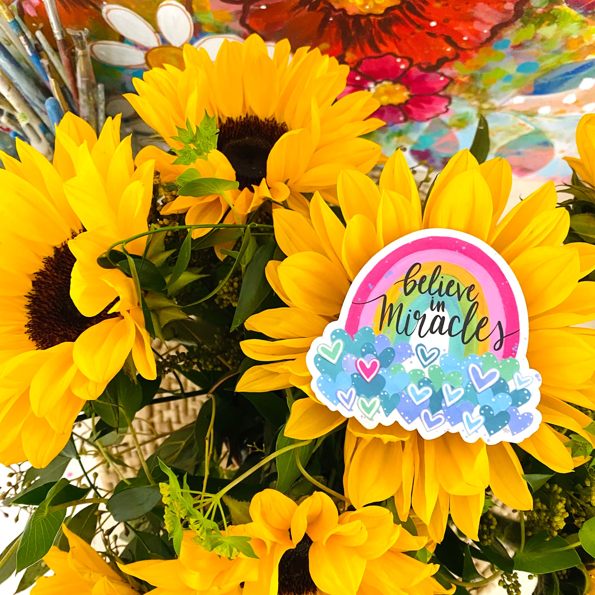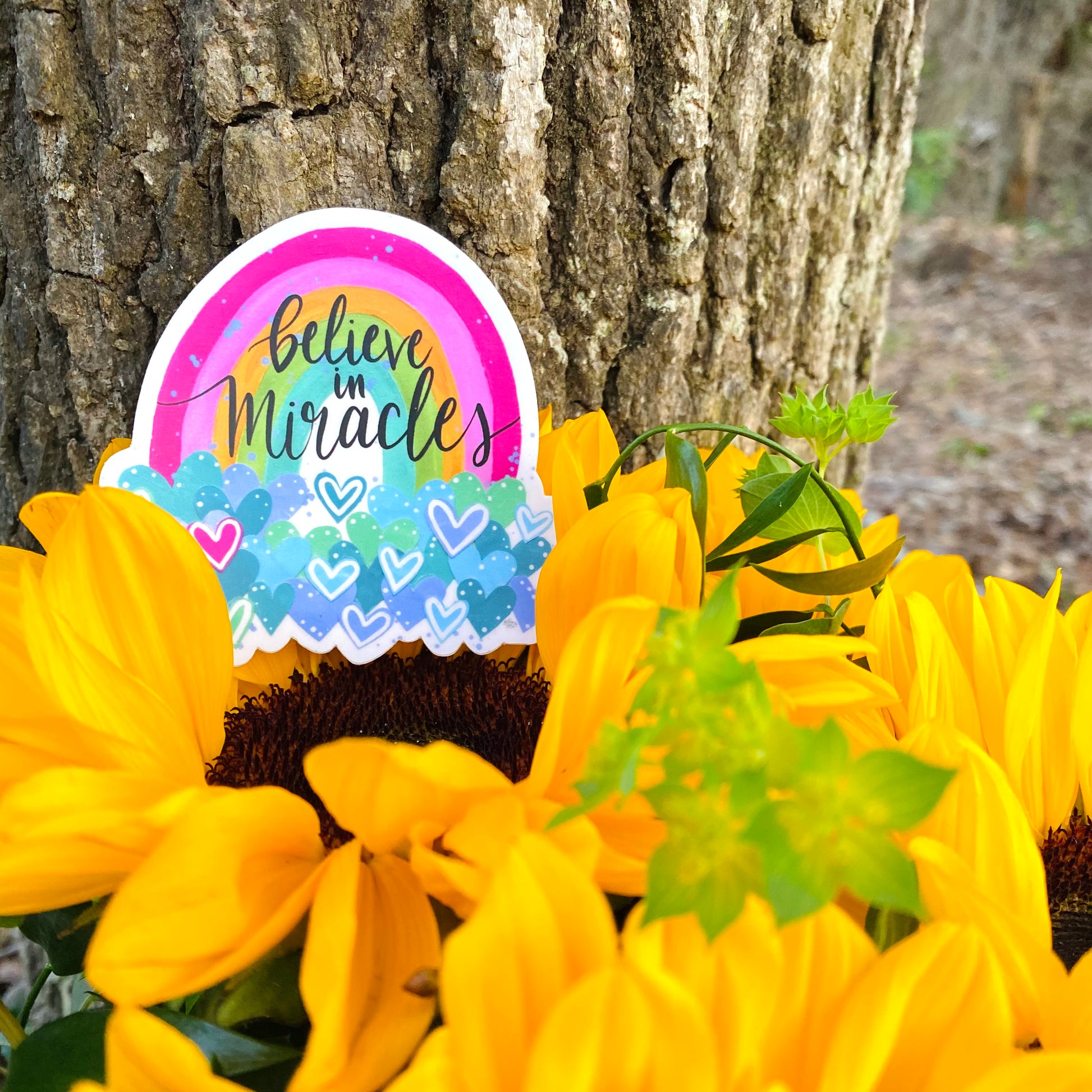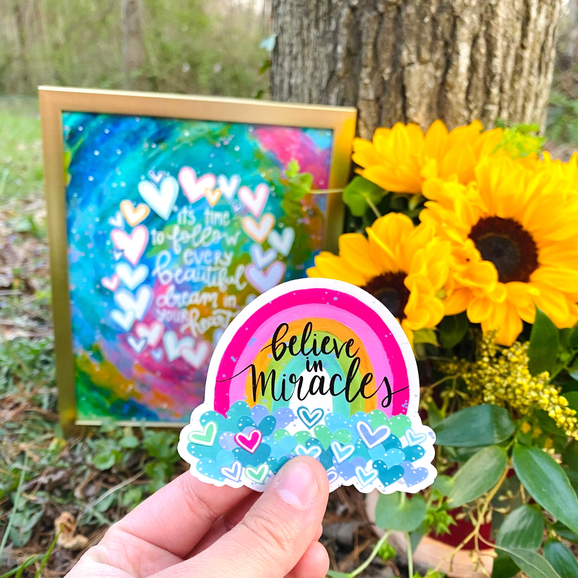 This listing is for a “Believe in Miracles” Rainbow hearts sticker!