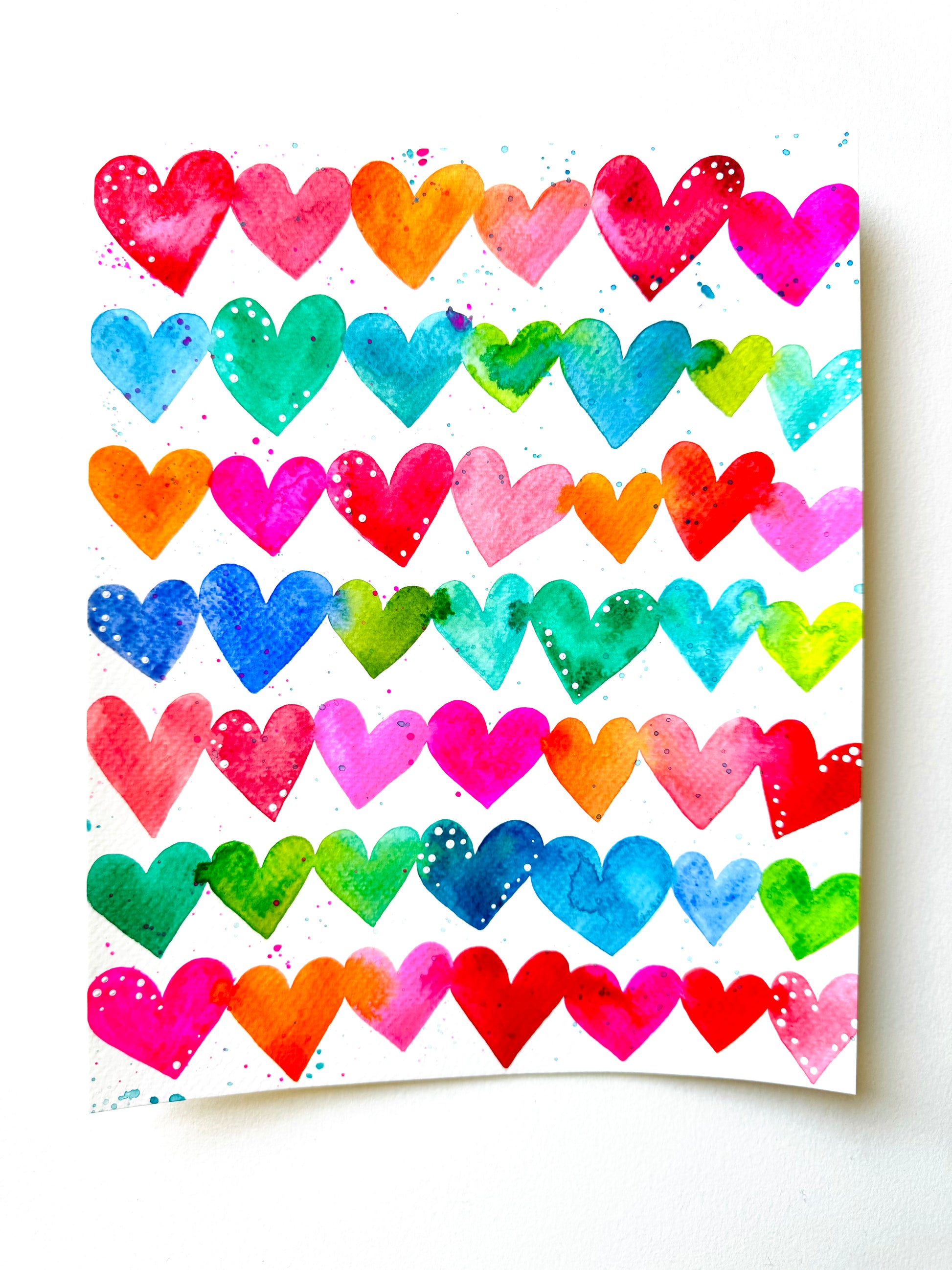 Rainbow Watercolor Hearts Original Painting on 8x10 inch paper