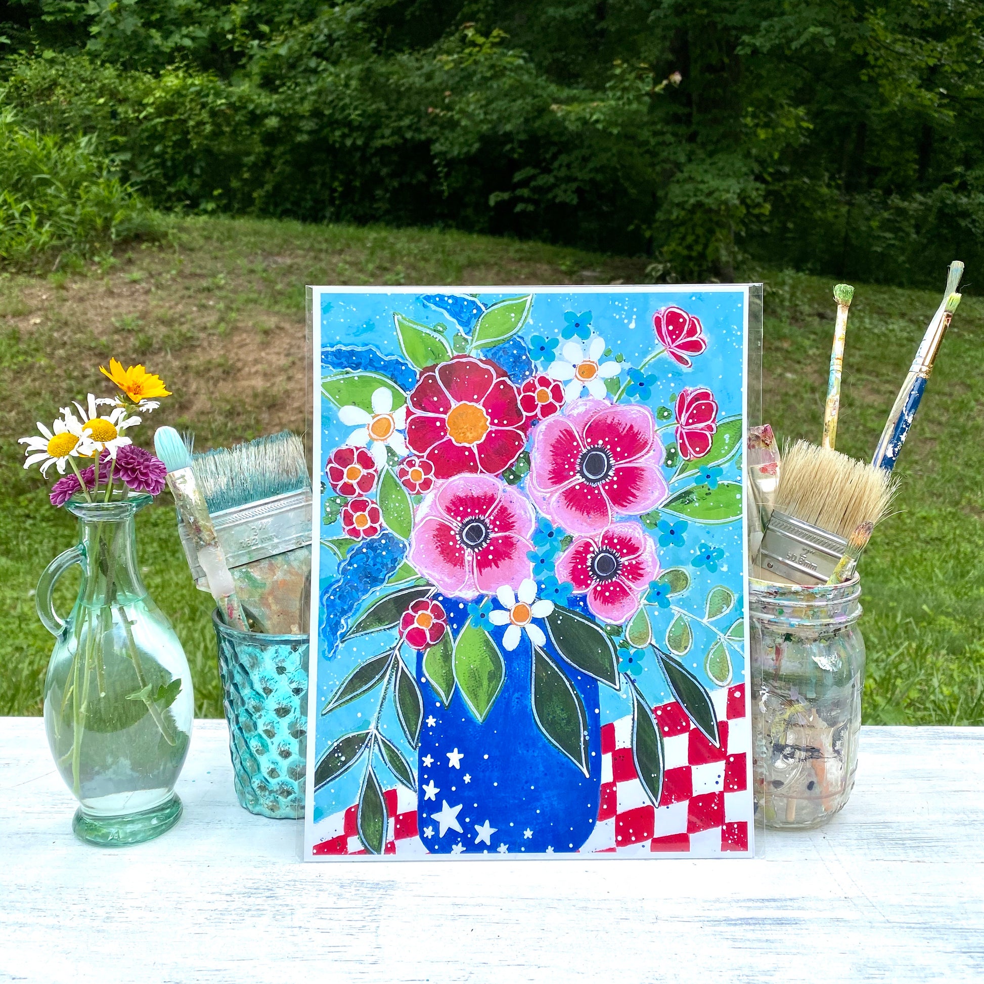 Red White and Blue Floral is an art print on high-quality, fine art, matte paper that is printed in-house with our professional inkjet printer. Your print will be borderless and have a genuine signature added before each sale.