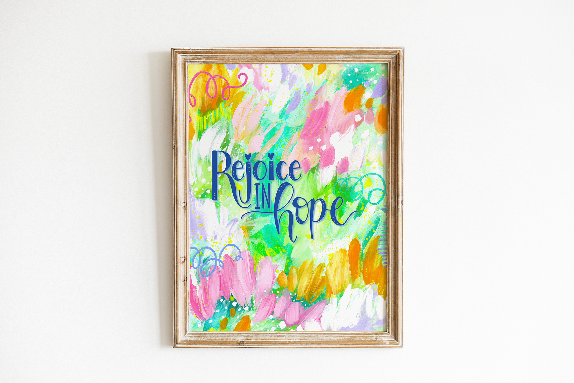 "Rejoice in Hope" is an art print on high-quality, fine art, matte paper that is printed in-house with our professional inkjet printer. Your print will be borderless and have a genuine signature added before each sale.