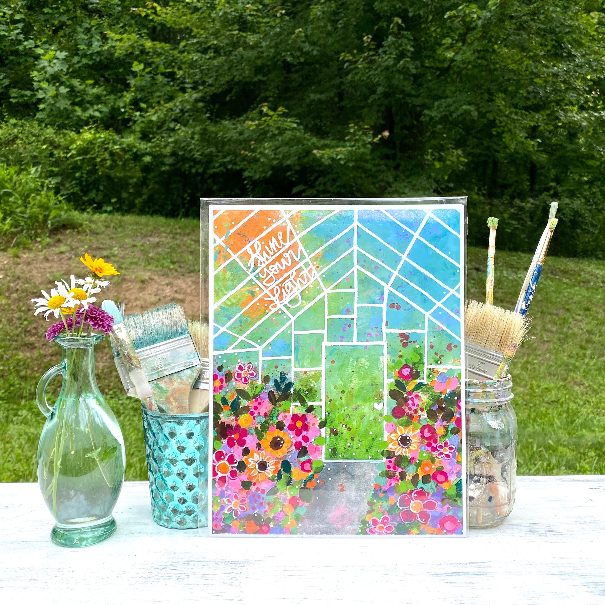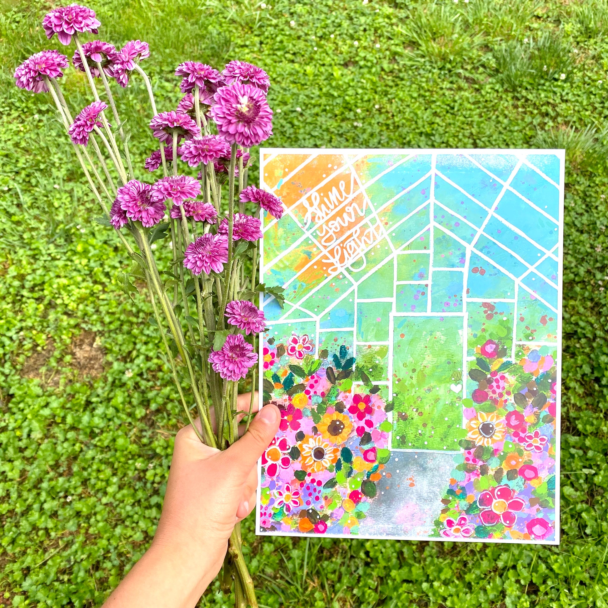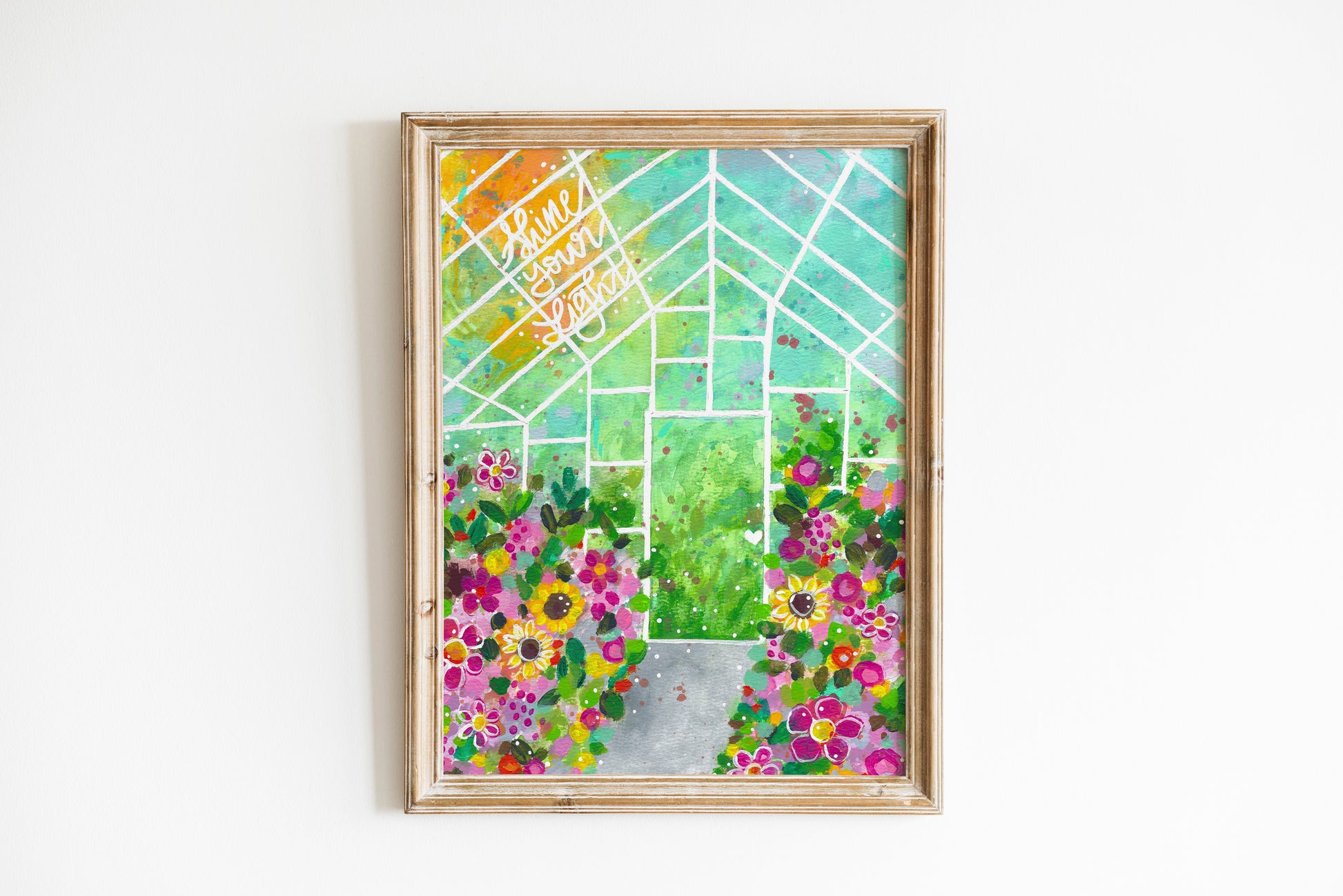 Shine your Light Greenhouse is an art print on high-quality, fine art, matte paper that is printed in-house with our professional inkjet printer. Your print will be borderless and have a genuine signature added before each sale.