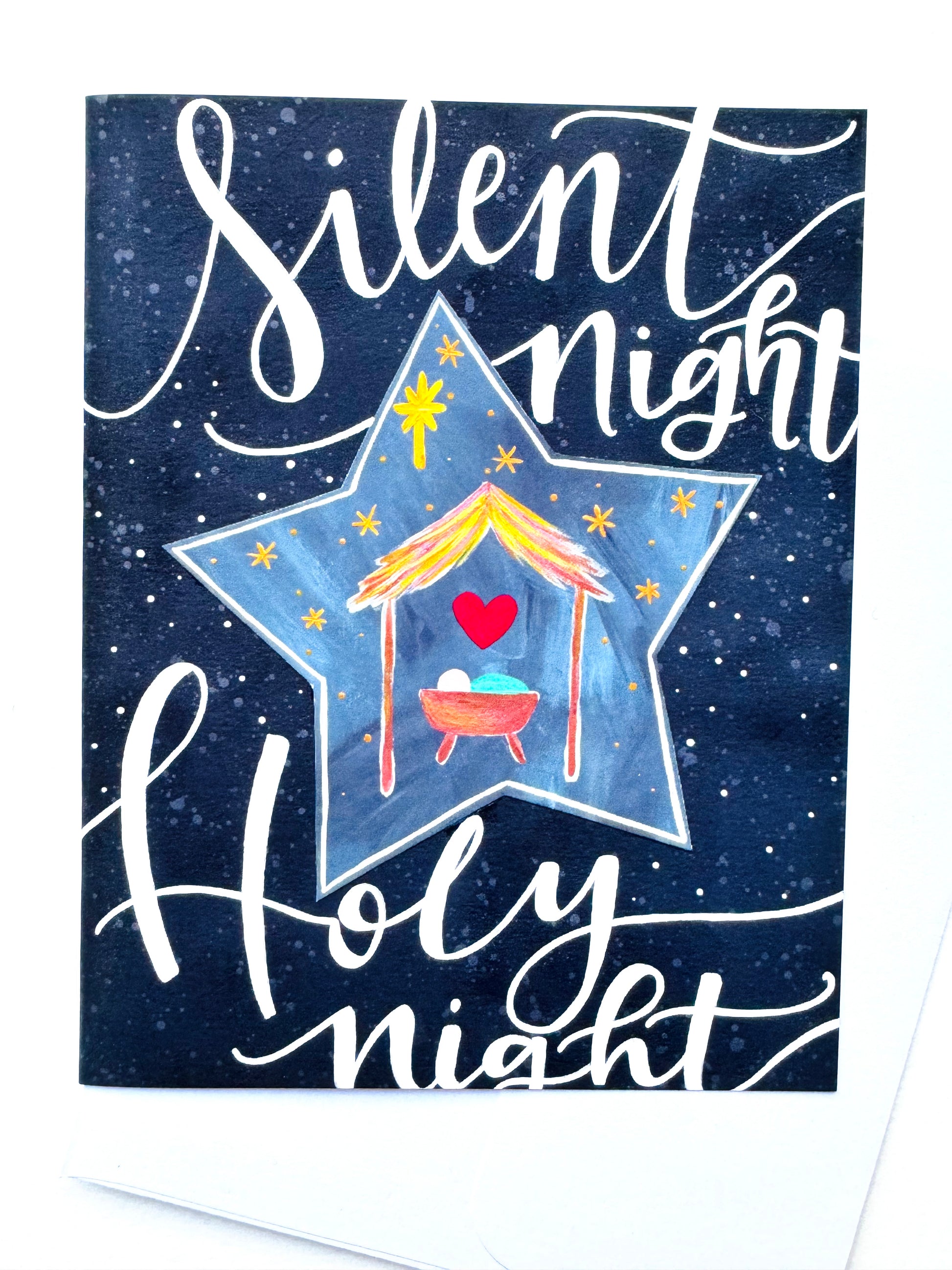 This listing is for one 4.25 x 5.5 inch folded greeting card with a white envelope.