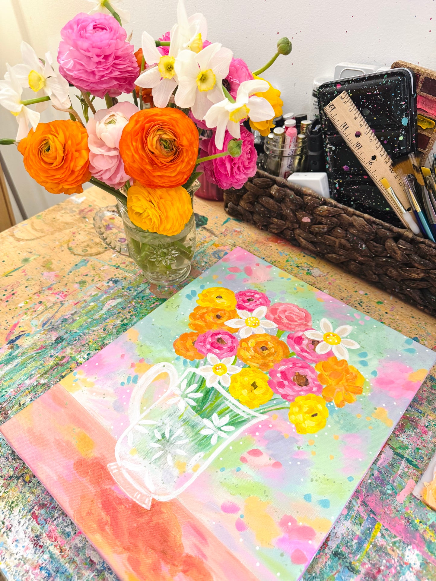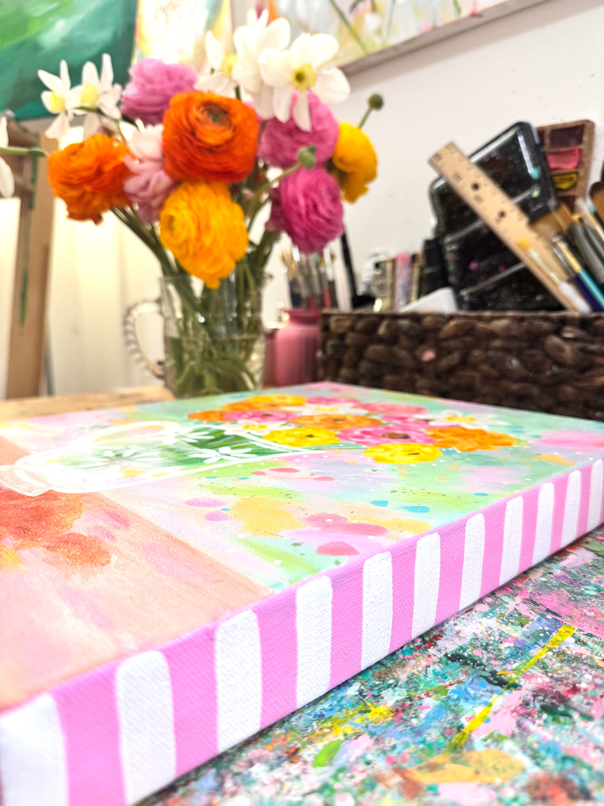 "Spring in Bloom” was created with acrylic paints and lots of love! Layers of gorgeous colors to add extra joy to your home.
