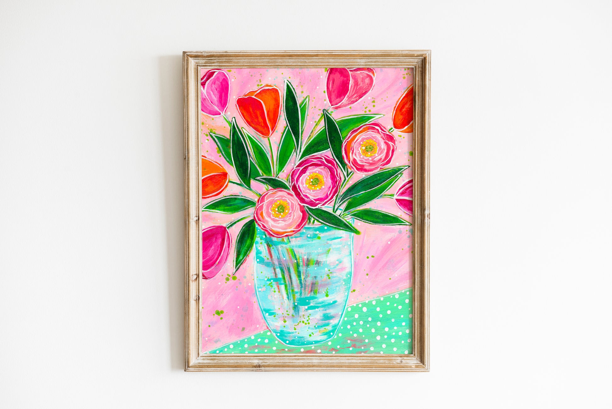 "Tulip Bouquet" is an art print on high-quality, fine art, matte paper that is printed in-house with our professional inkjet printer. Your print will be borderless and have a genuine signature added before each sale.