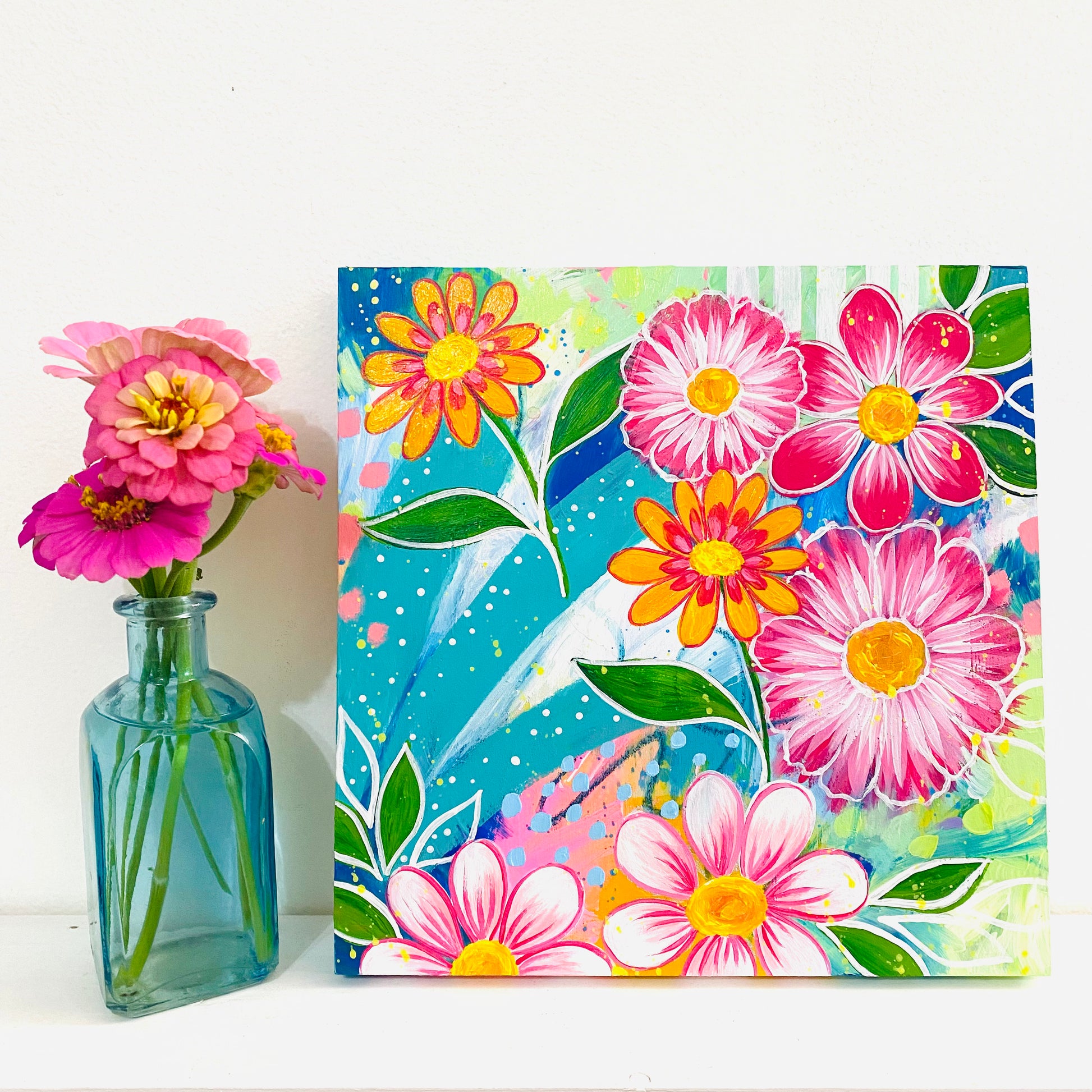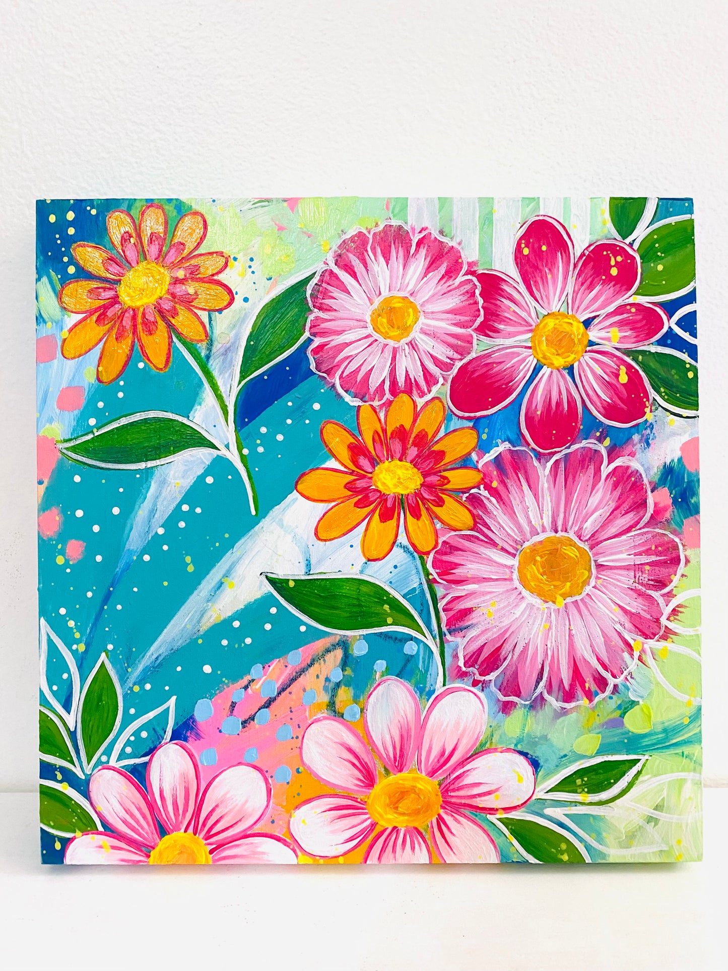“Wildflower Dreamscape” 8x8 inch original floral painting on wood panel