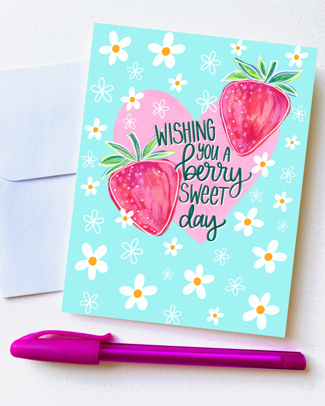 "Wishing You a Berry Sweet Day" Aqua Card with Envelope