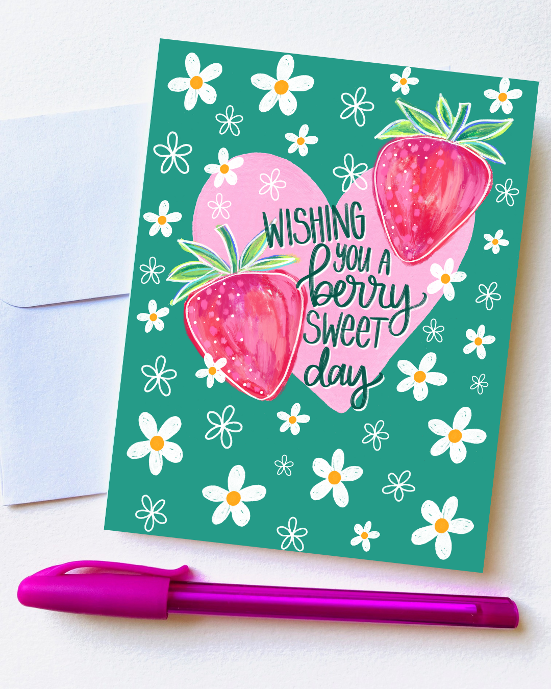 "Wishing You a Berry Sweet Day" Green Card with Envelope